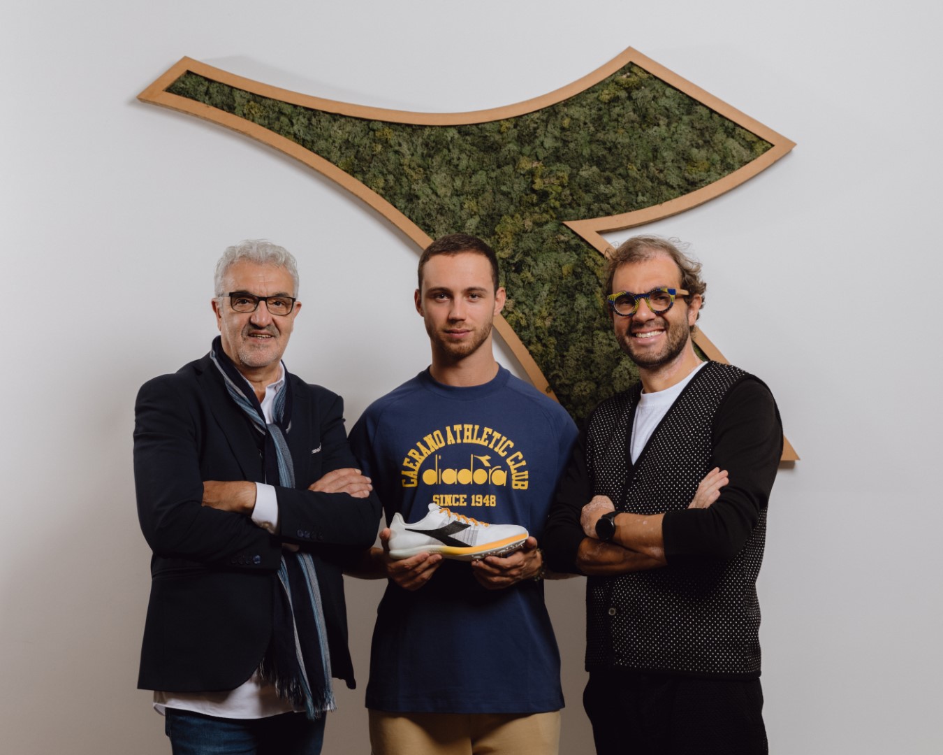 L’atleta, campione europeo indoor dei 60 mt, era oggi in visita al CRD (Centro Ricerche Diadora) per presentare la nuova scarpa per la velocità.